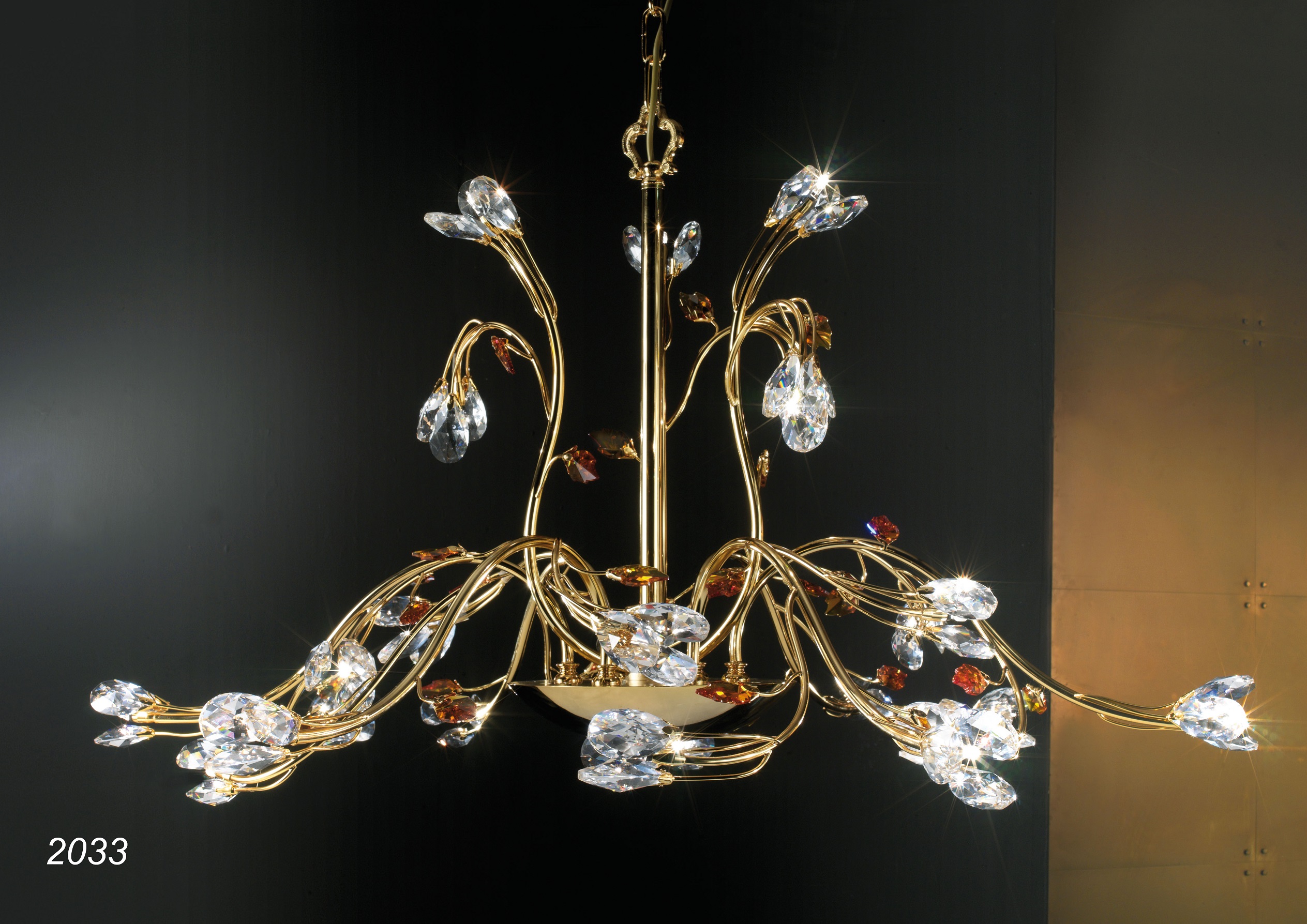 Apparecchio per illuminazione di interni con struttura in Ottone e cristalli SWAROVSKI ELEMENTS.